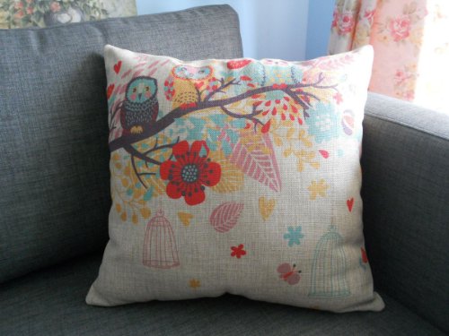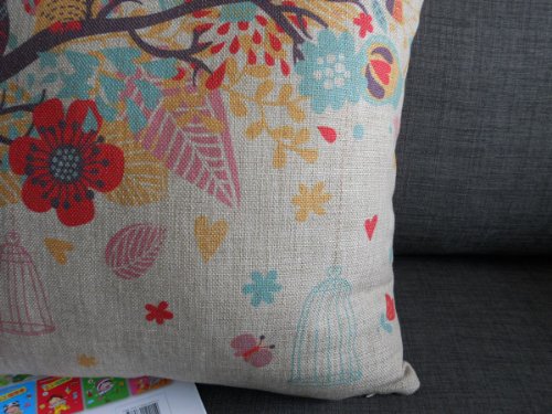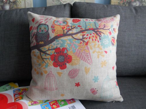 - Title : Decorbox Cotton Linen Square Decorative Throw Pillow Case Cushion Cover Owls with Birdcage 18 "X18 "
