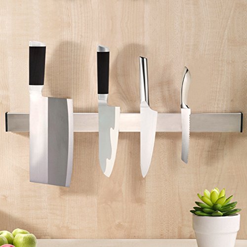 KES SUS 304 Stainless Steel Magnetic Knife Rack 3M Self Adhesive Sticky Kitchen Storage Organizer Stick on Utensil Hanger 20-Inch or 50 CM, Brushed Finish, KUR201S50-2