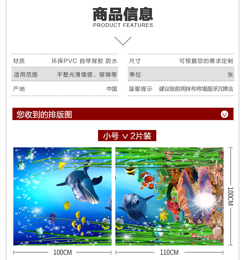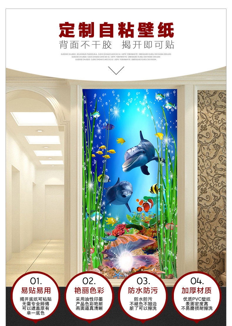 3D海底世界主题壁画主题酒店自粘卧室儿童防水房装饰品墙贴纸贴