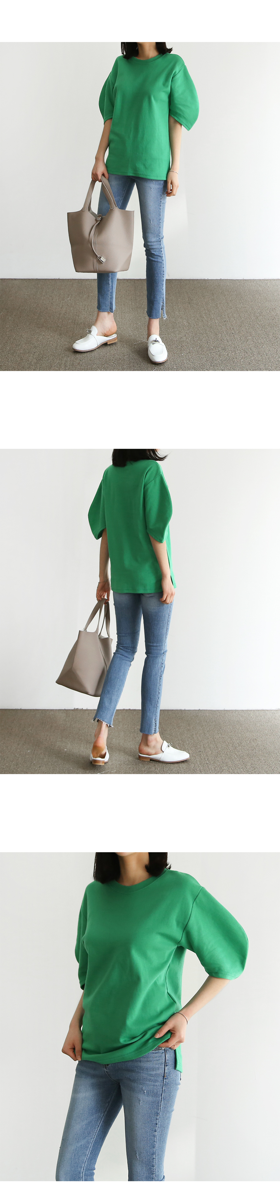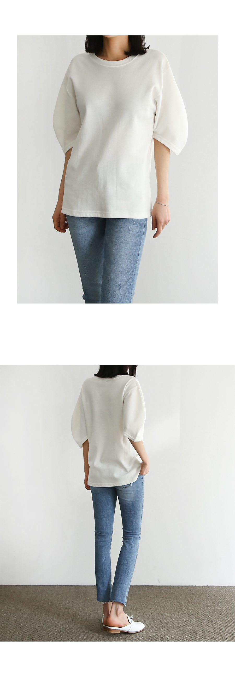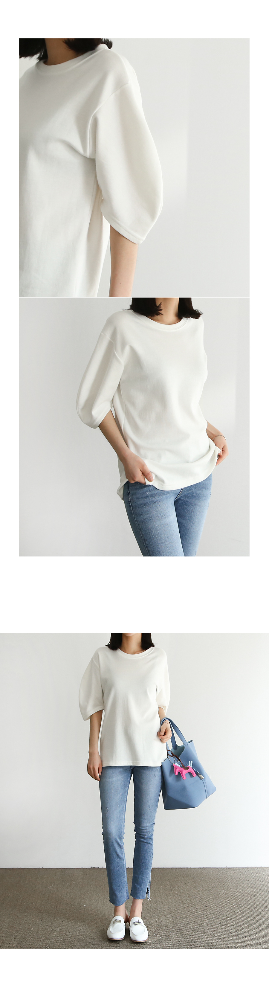 볼륨감있는 퍼프소매가 매력적인 티셔츠입니다
