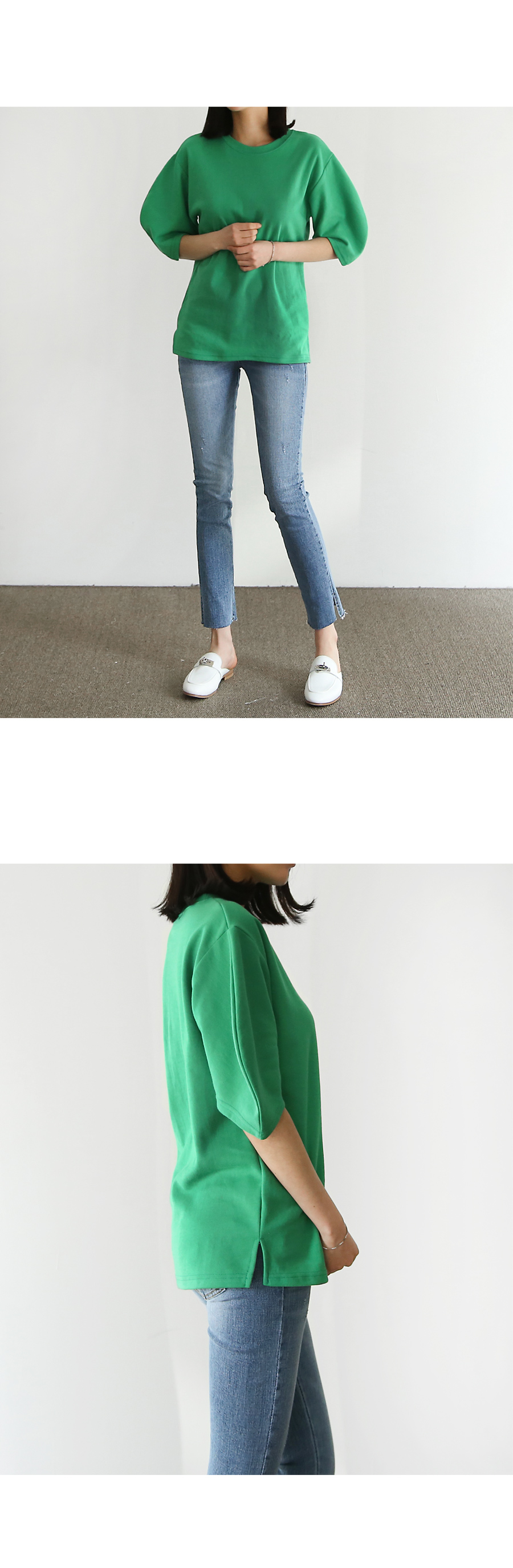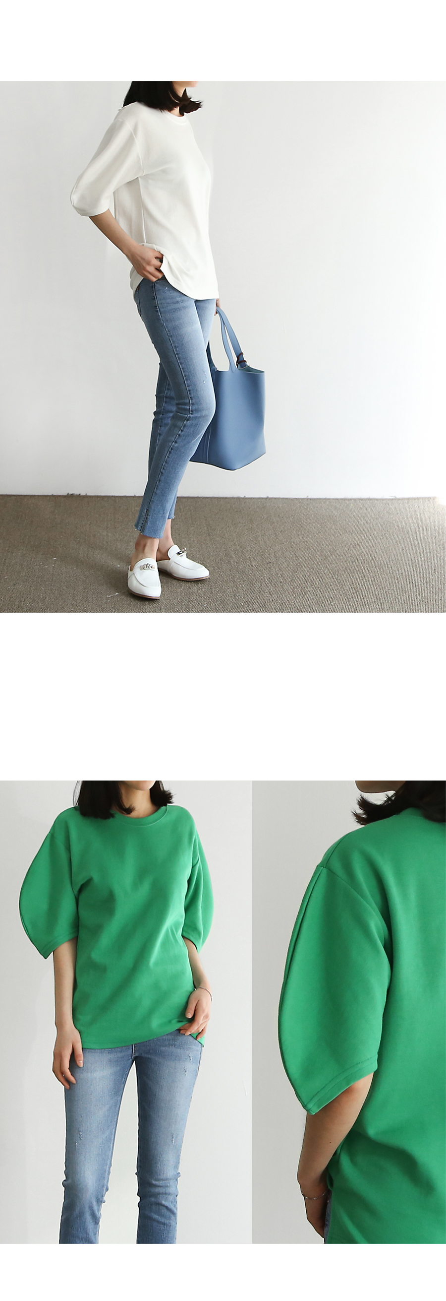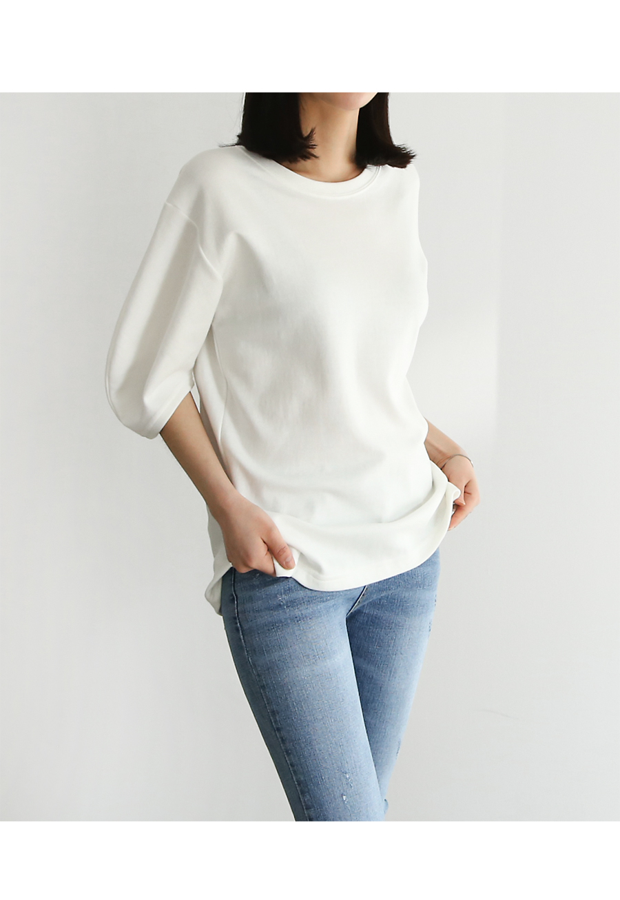 볼륨감있는 퍼프소매가 매력적인 티셔츠입니다