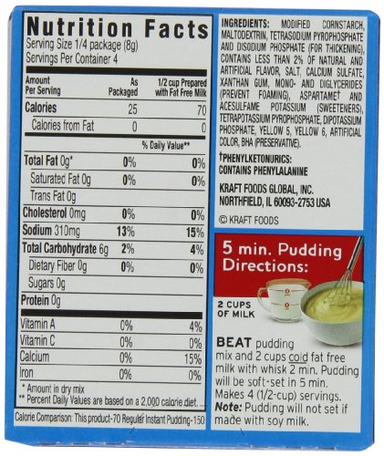 Jell-O Sugar-Free Instant Pudding & Pie Filling, Banana Cream, 0.9-Ounce Boxes (Pack of 24)