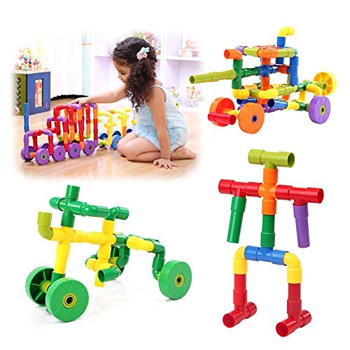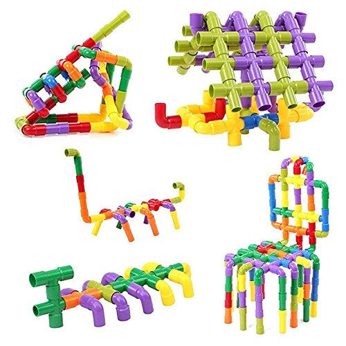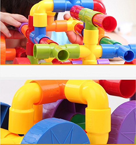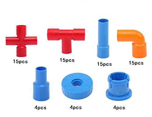 -. Feature : ☆Creative and Funny Tubation Building Blocks - Encourages sparkling imagination of your children. / ☆Water Pipe Plug Match Building Block Includes - 15pcs cross pipe, 15pcs 'T' shape pipe, 15pcs straight pipe, 15pcs bending pipe, 4pcs alxe, 4pcs wheel and 4pcs wheel fastner / ☆Advanced Environmental Quality - ABS plastic material is good for kids in using and playing. 100% Eligible materials for baby DIY safely! / ☆Colourful and Beautiful Appearance - Helps to stimulate creativity and reasoning, basic physics, fine motor and problem solving skills / ☆No Sharp Corners or Edges - Durable plastic pieces, stick together and easy for kids to play with. Also easy to pack for playing outdoors as well