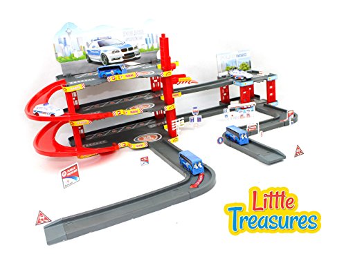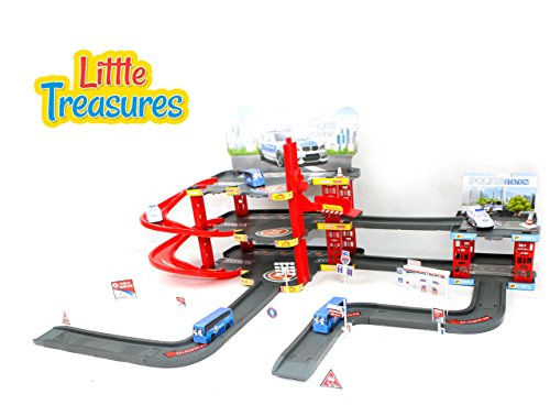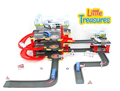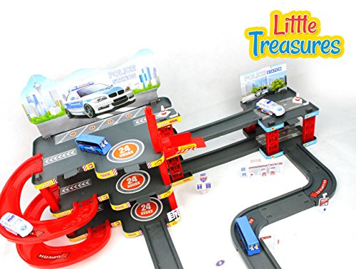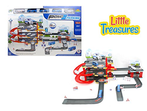 LITTLE TREASURES POLICE PARKING GARAGE CENTRAL STATION PLAY SET - LET YOUR LITTLE OFFICER TAKE CONTROL OF THE TRAFFIC AND RESTORE ORDER - FUN TOY GAME FOR KIDS ACTION