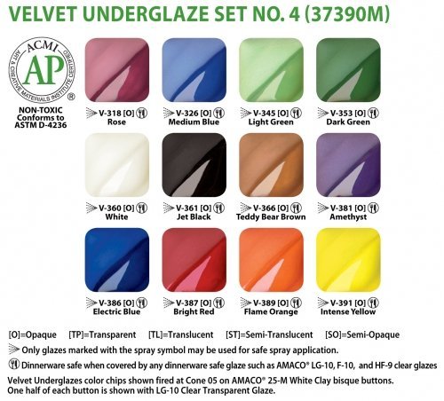 Amaco Velvet Underglaze Set 4 - Set of 12 Colors - 2 Oz. Jars