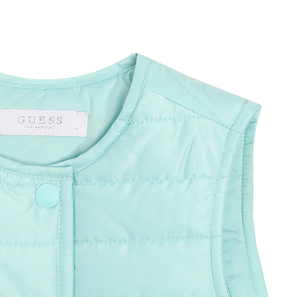 여아 퀼팅베스트입니다. 가로 퀼팅 누빔으로 간절기 가볍고 간편하게 착용이 가능한 베스트입니다. 민트컬러의 소프트한 컬러감이 봄과 어울리는 예쁜 컬러로 소프트하고 밝은 데님과 함께 예쁘게 코디가능하며 게스 로고 라벨로 심플하게 마무리되었습니다. 티셔츠 위 간편하게 착용하거나 좀 더 쌀쌀한 날엔 아우터 속 이너베스트로도 따듯하게 착용이 가능합니다. (구리점/19년도 봄상품)