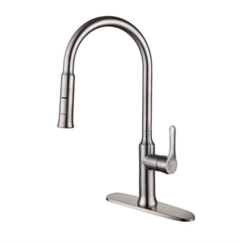 Kitchen Faucet, Cele Lead Free Food Grade Stainless Steel Kitchen Sink Faucet with Pull Down Sprayer, High Arc Single Lever Pull Out Kitchen Sink Faucets with Sprayer, Escutcheon is included