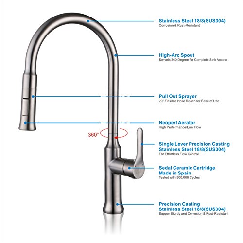 - LEAD FREE KITCHEN FAUCET---Lead-Free Water Way Kitchen Faucet, Food Grade Stainless Steel, Healthier and More Durable Water Flow, Best Choice for Family Healthy Especially Kids