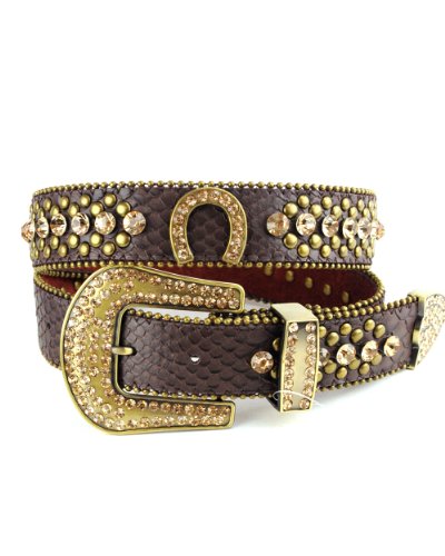 Product DescriptionThis belt features rhinestone silver studs and horseshoe decoration along with 3 sets western style rhinestone buckle.0