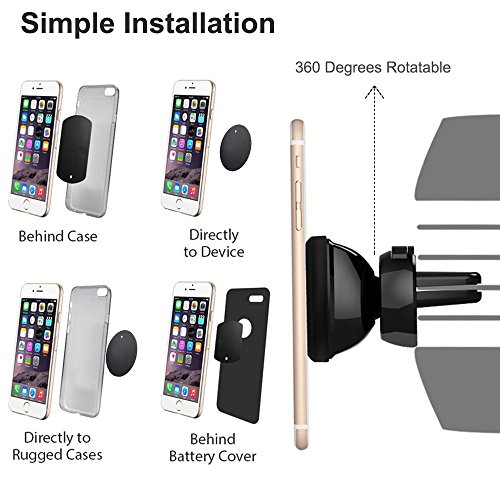 Easy to Posit:You can posit this Magnetic Car Phone Holder in any orientation, horizontal or vertical; fits most straight air vents.