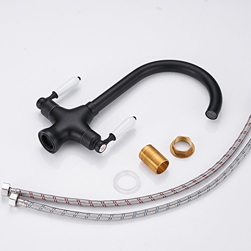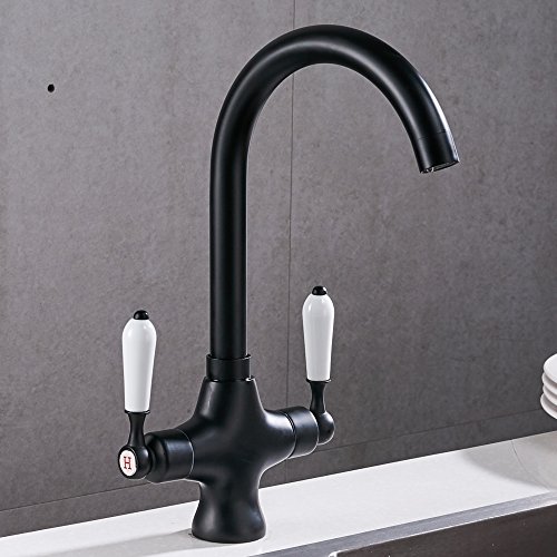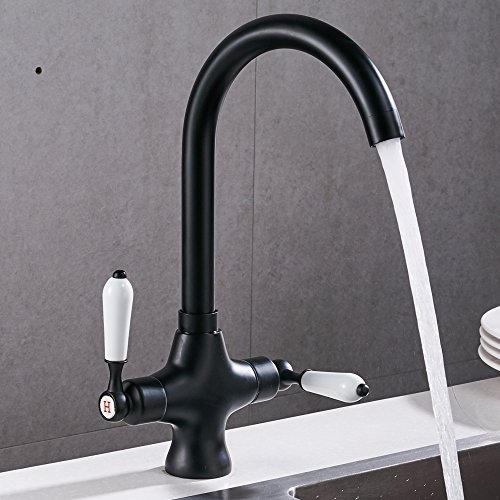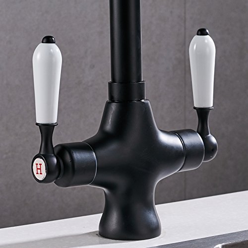 Velimax Premium Brass Faucet Ceramic Double Lever Two Handle Pull-Down Hot& Cold Mixer Kitchen Sink Faucet Pull-Down Matte Black