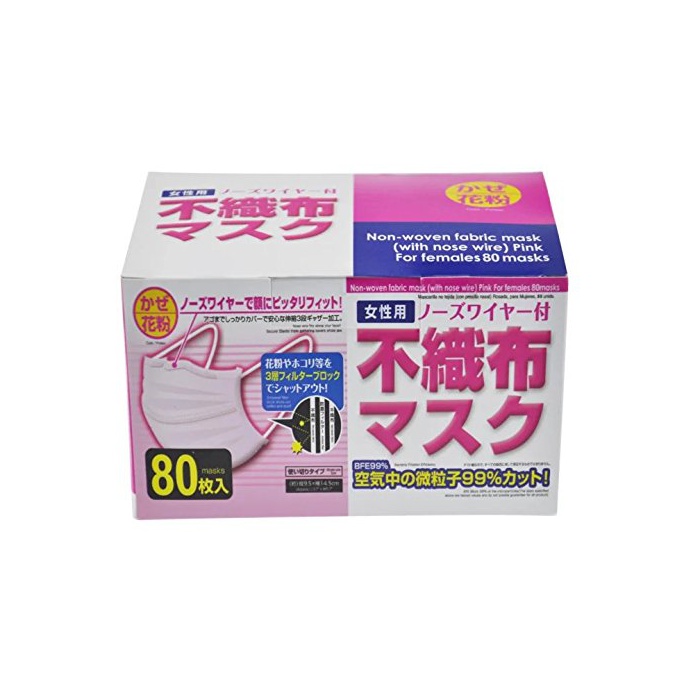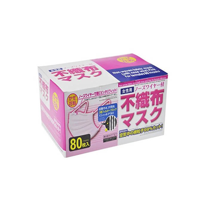 원본상품명: WSK マスク 女性用 使いきりマスク 不織布マスク プリ?ツ ノ?ズワイヤ?付 かぜ花粉用 ピンク マスク 小さめサイズ 80枚入(ピンク)