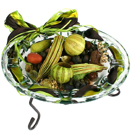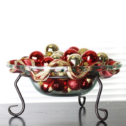 Couronne Company M024-200 Ribbon Recycled Glass Bowl & Metal Stand, 12", Clear, 1 Piece