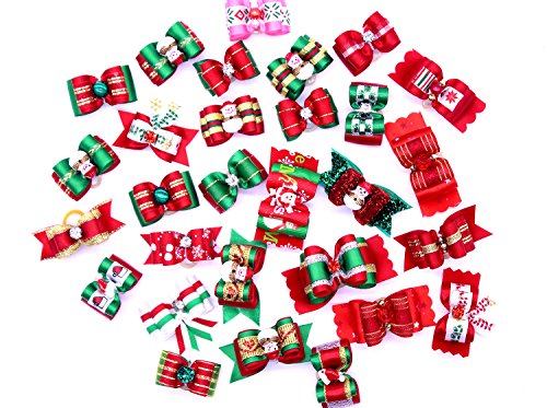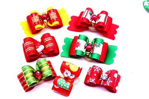 -. Title : Yagopet 20pcs/pack Dog Hair Bows Rubber Bands Christmas Styles Dog Bows for Holidays Festival Rhinestone Pearls Dog Bows Pet Dog Grooming Bows Dog Hair Accessories