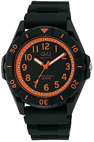 상품명: Q&Q 맨즈 레이디스 유니섹스 손목시계 10기압 방수 컬러 워치 다이버스디자인 VR58-003 블랙 오렌지