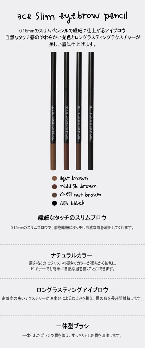 【韓国直送】韓国コスメ 3CE SLIM EYEBROW PENCIL (スリム アイブロウ ペンシル/全4色1択)