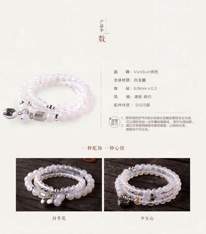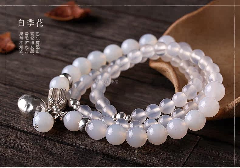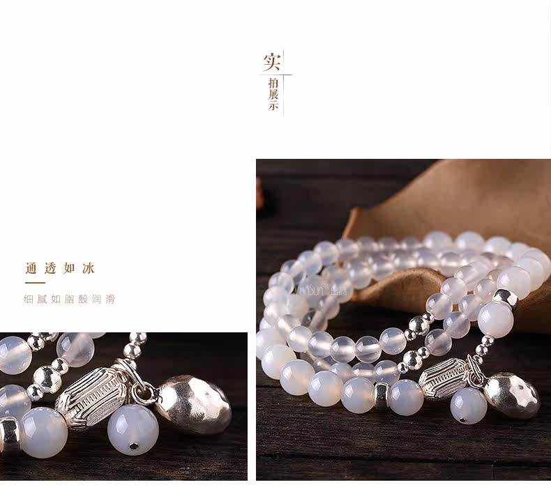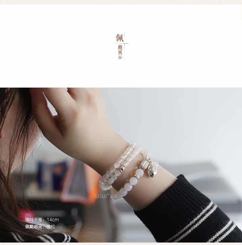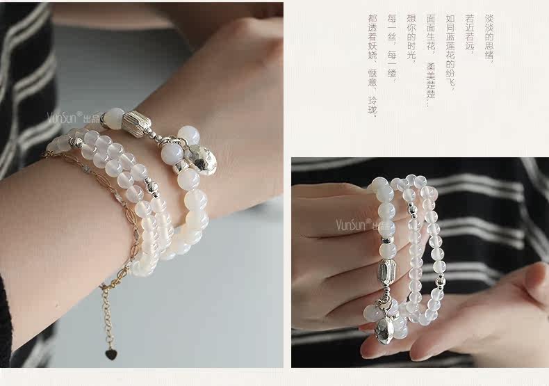 天然玛瑙手链女款 多层缠绕白玉髓手串女简约清新文艺饰品