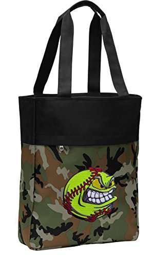 Product Description This camo design Broad Bay Softball tote bag is great for travel, everyday use, the beach, or a day at the pool. This classic camo Softball tote bag features long shoulder straps, a roomy main compartment, an outside zippered pocket, and tough 600 Denier fabric construction. 15.5in high x 13in wide This Broad Bay Softball tote makes a useful and unique Softball gift. 0