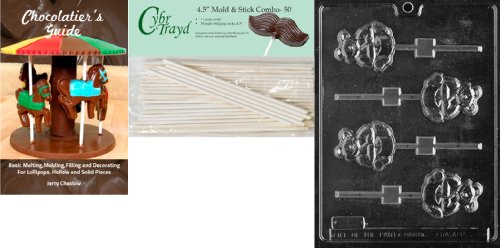 Cybrtrayd 'Bear with Drum Lolly' Christmas Chocolate Candy Mold with 50 4.5-Inch Lollipop Sticks and Chocolatier's Guide
