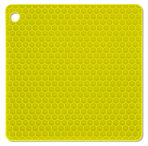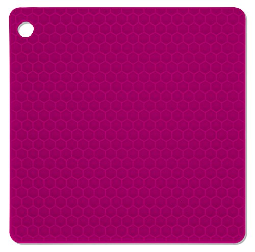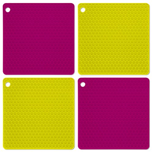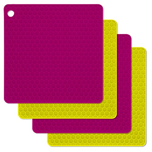 DecorRack Silicone Pot Holder, Trivet Mat, 7"x7" Non-slip, Heat Resistant, Flexible, Durable, Dishwasher Safe Potholders Purple-Yellow (4 Pack)