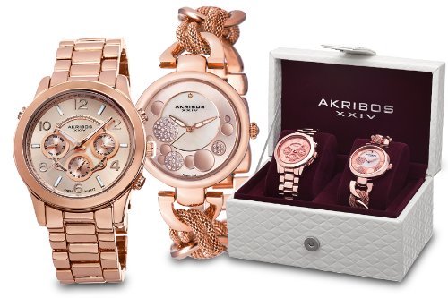 -. Title : Akribos XXIV Rose Gold Tone Stainless Steel Watch Set AK676RG