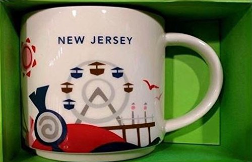 -. Brand : Starbucks -. Color : White, Red -. EAN : 0762111077721 -. Feature : New Jersey Starbucks You Are Here Collection Mug. / The Mug is stored in free smoke environment. / Dishwashers and Microwave Safe / Ceramic14 fl oz/ 414 ml / Comes with original box -. Label : Starbucks -. Manufacturer : Starbucks -. PackageQuantity : 1 -. ProductGroup : Kitchen -. ProductTypeName : KITCHEN -. Publisher : Starbucks -. Size : 14 oz -. Studio : Starbucks -. Title : New Jersey Starbucks You Are Here Collection Mug, 14 Oz -. UPC : 762111077721