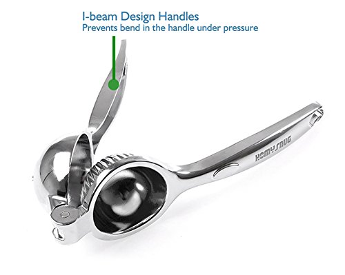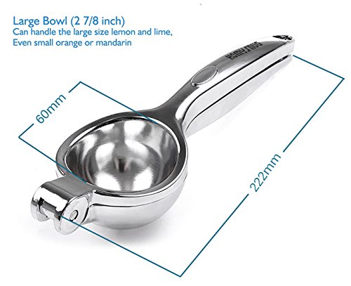 -. Brand : HomySnug -. Color : Silver -. EAN : 0190203234927 -. Feature : ✔ HEAVY DUTY AND UNBREAKABLE - 100% anti-rust 18/10 stainless steel made by Zinc Alloy, which is anti-corrosion and high temperature resistance / ✔ LARGE AND DEEP BOWL (2 7/8 inch) - Can handle large size lemon and lime, even small orange or mandarin [Perfectly fit for 55mm size fruit] / ✔ SOLID AND SMOOTH HANDLE DESIGN - Avoids injure your hand and prevents bend in under pressure / ✔ ERGONOMIC DESIGN OFFERS A COMFORTABLE GRIP - Raised stripes on the bottom fix the lemon firmly / ✔ EASY TO CLEAN AND DISHWASHER SAFE - Clean Lemon juicer squeezer with tap water and it won't rust -. IsAutographed : 0 -. Label : HomySnug -. Manufacturer : HomySnug -. Model : HSqueezer-A -. MPN : HSqueezer-A -. PartNumber : HSqueezer-A -. ProductGroup : Kitchen -. ProductTypeName : KITCHEN -. Publisher : HomySnug -. Studio : HomySnug -. Title : HomySnug Lemon Juicer Squeezer, 18/10 Stainless Steel Citrus Lime Manual Juicer - Heavy Duty Lemon Squeezer Press -. UPC : 190203234927