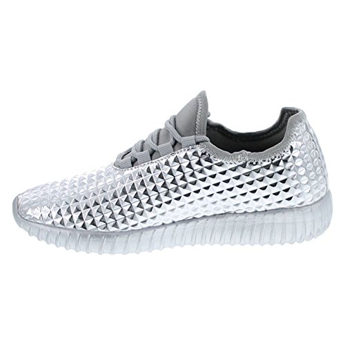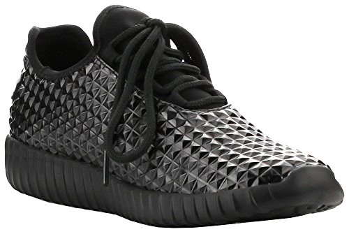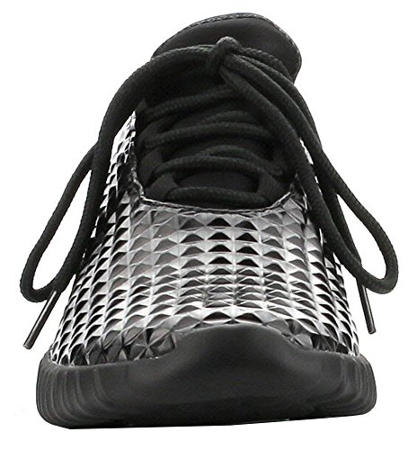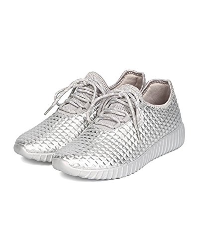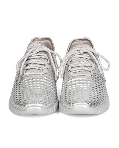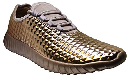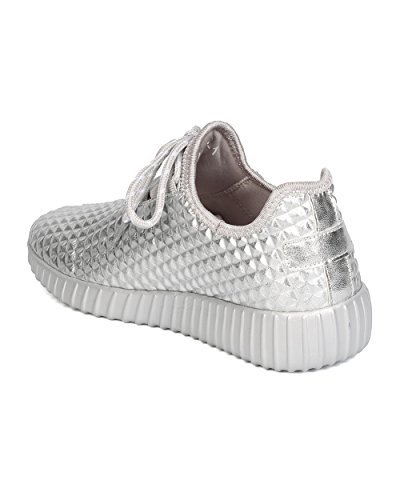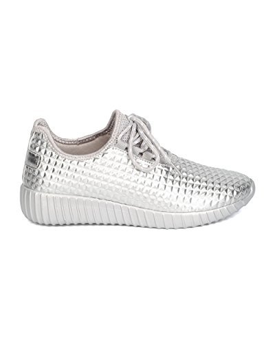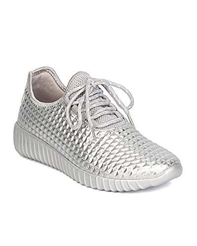 Cape Robbin GB66 Women Metallic Leatherette Quilted Lace Up Jogging Sneaker