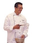 San Jamar J044GN Chef-tex Poly Cotton Brigade Jacket with Green Piping and Push Through Button, 4X-Large, White