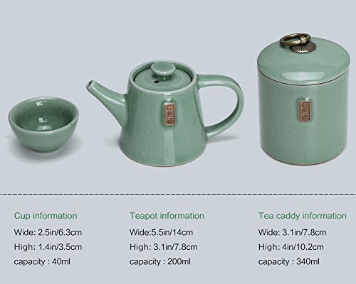Specifications: Material: Ge kiln( a kind of ceramic) Surface processing: Ge kiln cracked glaze Packing: travel bag Teapot capacity: 200ml/7oz Package included: 1* Teapot 4* Teacups 1* Tea canister 1* Tea tray 1* Tea clip 1* Towel