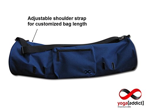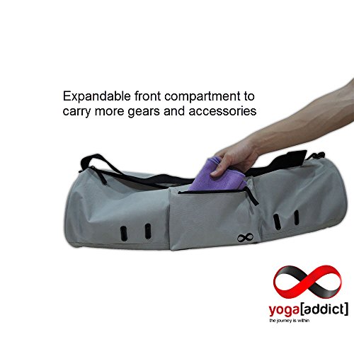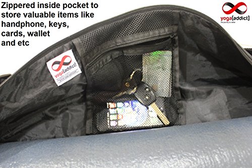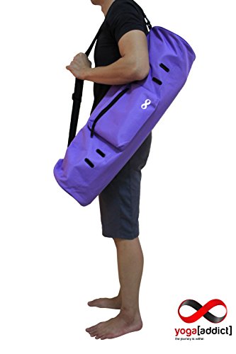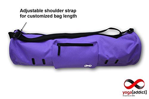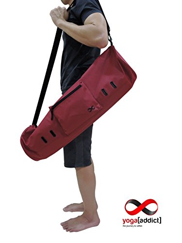 - Keep your mat clean, dry and portable. Extend the life of your valuable yoga mat by protecting it in a quality constructed yoga mat bag. - Easily adjust the shoulder strap to your height and preferred carrying position. - Durable fabric which are able to withstand any environment as well as daily commute to and from your practice. - The construction is sturdy with lots of room for yoga mat, towels, yoga straps, keys, extra shirts, wallet, membership cards, tissues, journals, handphones, and etc. - Ventilation eyelet holes on the outer bag helps to air the bag out. - Top main zipper is wide enough to allow your yoga mat to slide in quickly and easily. ?
