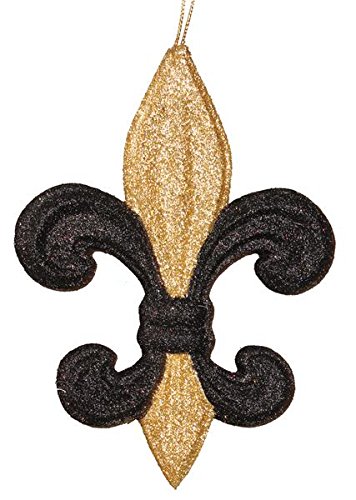Set of 6 Glitter Fleur de Lis with Hanger (Black, Gold, 4")