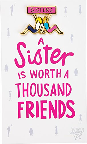 Studio : Primitives by Kathy Publisher : Primitives by Kathy Binding : Office Product Product Description A "Sisters" high-quality hard enamel pin with characters sitting back-to-back design and a butterfly clip closure. Comes packaged on a double-sided, thoughtfully-coordinated card with "A Sister Is Worth A Thousand Friends" sentiment and an intentional blank reverse side for a handwritten note. 0