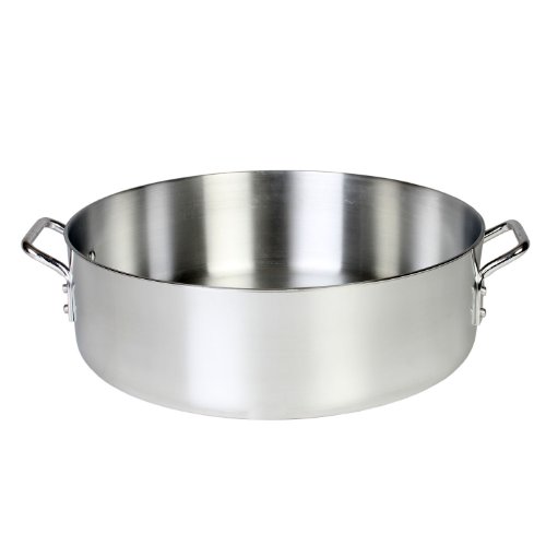24 quart aluminum brazier pot with lid. 6 mm thick extra heavy aluminum body. Mirror Finished surface allow easy maintenance. Flat bottom for even level cooking. NSF approved. Capacity available in 8, 12, 14, 20, 24, 30, 35 and 40 quart.Feature