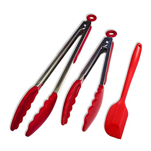 - SUPER VALUE SET: Set of 2 BBQ and salad tongs; come with a 8.5" SILICONE SPATULA which you can use in thousands of different ways in the kitchen