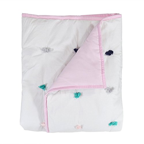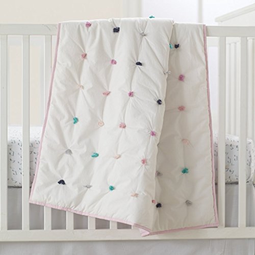 Product Description Our Pom-pom multi-color quilt is super soft and hand made with love. Your little girl with love to play and snuggle with it. Cotton shell. Sized for cribs and toddler beds. Quilt size is 36" x 45". 0