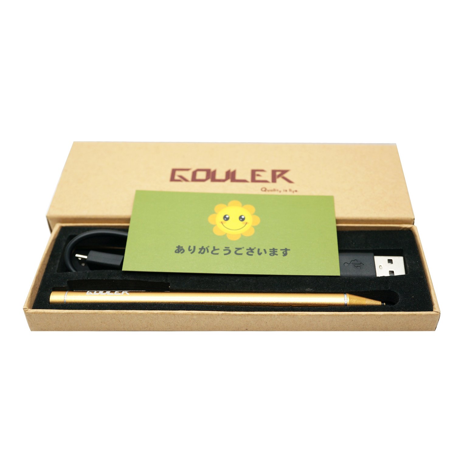 When the lithium power supply is built in the touch pen, pressing the button turns it on and the LED lights in blue.