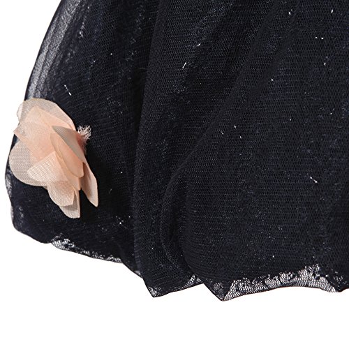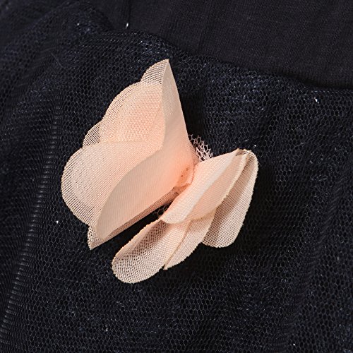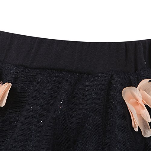 Dark blue double-layered skirt with pink gauze florets. Inner layer of crinkle; exterior of thin gauze.