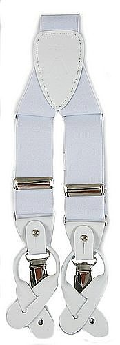(King Formal Wear)/Accessories/Suspenders Cummerbunds/DIRECT FROM USA/Stylish White Adjustable Button and Clip Convertible Ends Suspenders with 3 Clips