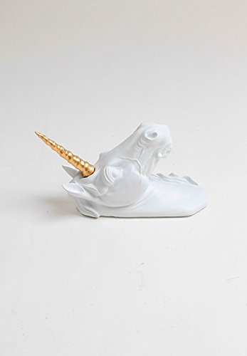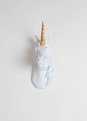 Mini Faux Unicorn Head Wall Hanging - The Mini Binx in White with Gold Horn- Magical Unicorn Decor - Unicorn Wall Mount Art - Unicorn Taxidermy Wall Decor Sculpture By White Faux Taxidermy