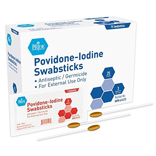 Povidone - Iodine Swabsticks - 75 Swab Sticks per box - 3 per pouch - First Aid
