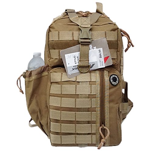-. Feature : Perfect for outdoor use! / Wide and Thick sling shoulder strap, Tan / Capacity: 1200 cu. in. / Size: 18"(Height) x 9"(Width) x 5.5"(Depth) / Multiple MOLLE style straps and Audio pass-through hole in front pocket