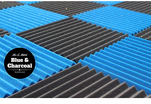 Soundproofing Acoustic Studio Foam - Blue Color - Wedge Style Panels 12”x12”x1” Tiles - 6 Pack
