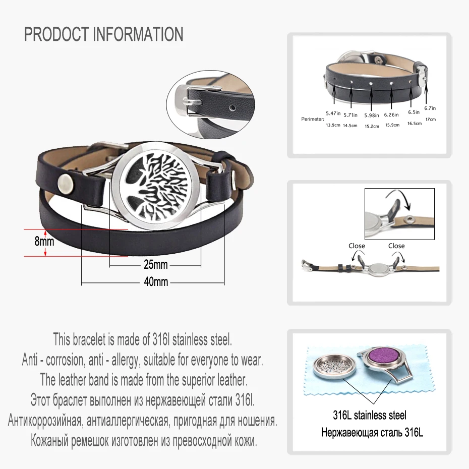 Model Number:Leather Essential Oil Diffuser Lockets Bracelets Bangles
