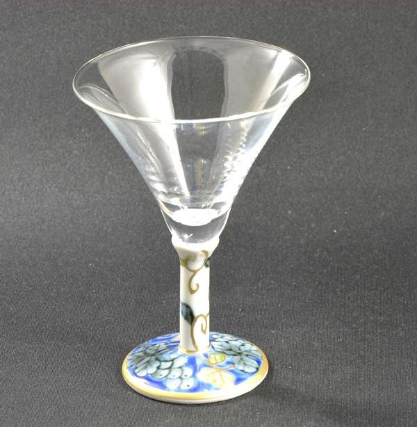 ガラスの透明性と有田焼の美しさが結びついたグラス。絵柄はひとつひとつ職人さんの手描きです。 製造国:日本 素材・材質:脚部:磁器(有田焼)グラス:ガラス 商品サイズ:約Φ80×H112mm 仕様:容量:90cc電子レンジ使用不可食洗機使用不可 ※サプライヤー直送品 ご注文後3~4営業日後の出荷となります【商品名】有田焼 福泉窯 有田浪漫 吟醸カクテルグラス 染錦葡萄 ブルー