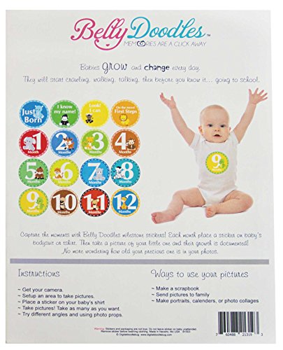 Belly Doodles 16 Baby Month Stickers Milestones Safari Animals 3.94inch (1-12 Months)