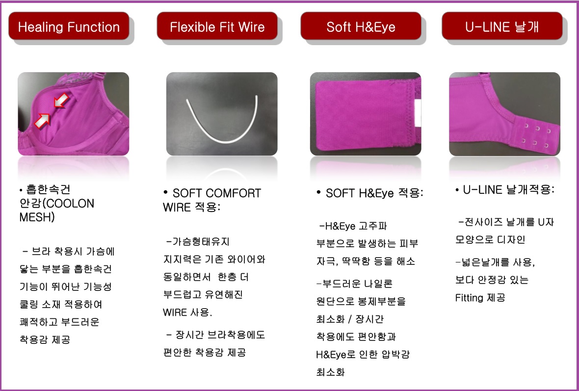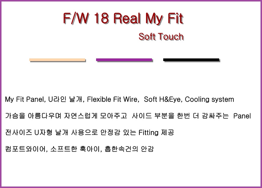 섬세한 레이스원단과 샤이니한 밑단 원단의 매칭으로 여성스러우며 모단한 룩을 연출하는 제픔입니다. 갇혀있는 가슴의 스트레스를 최소화한 PAD, 소프트한 컴포트와이어, 소프트한 훅과 아이, 흡한속건의 안감으로 가볍고 편안하게 착용 가능합니다.
