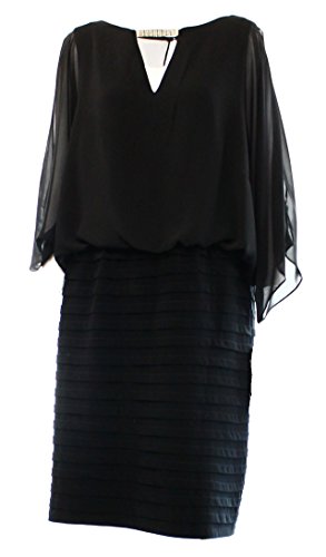 Xscape short split sleeve blouson with a rhinestone accent.