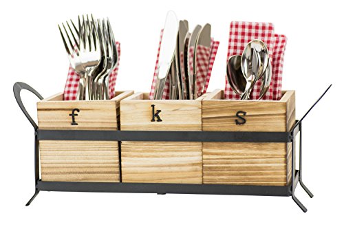 Boston Warehouse Rustic Farmhouse Flatware Caddy, Wood & Metal