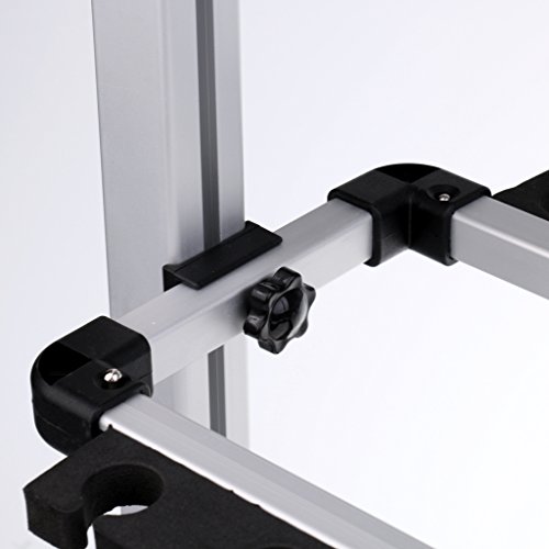 -. Feature : It can holds up to 16 rods or combos. / High quality and rust-resistant aluminum alloy frame, portable and durable. / Black EVA half hole can prevent damage to the fishing rod. / Super light and easy to assemble and transfer, double sided storage, save space. / Get one for your boat, yacht, garage or maybe even the bedroom.